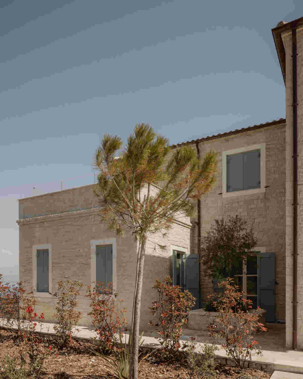The design emphasizes sustainability by using locally sourced materials to reduce the ecological footprint, while integrating energy-efficient systems and contemporary materials to optimize operational efficiency. The design redefines the rural typology through precision in proportion, craftsmanship, and material integrity.The architectural composition unfolds through a sequence of courtyards, terraces, and shaded thresholds that negotiate between interior and landscape.The building’s context becomes a study in equilibrium between landscape and structure, regional identity and contemporary architectural clarity.
