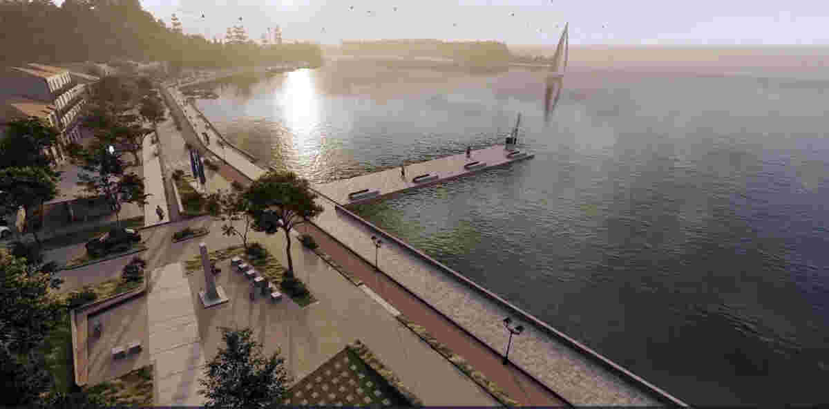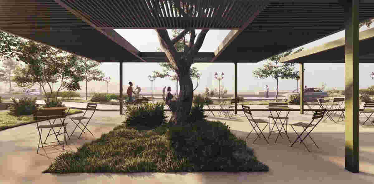 The proposed design is a remodelling of the coastal front, designed for residents and visitors using bioclimatic planning principles. The new route features pavilions, convertible pergolas, and open spaces. It begins at the beach, connects to key squares and parking areas, and extends to the Venetian castle. The pavilions will serve as “cultural points” for exhibitions and public events, open to residents, cultural groups, and schools.